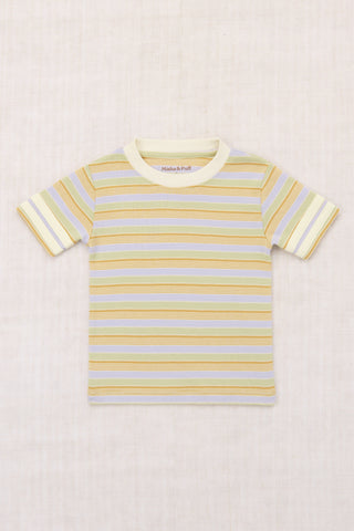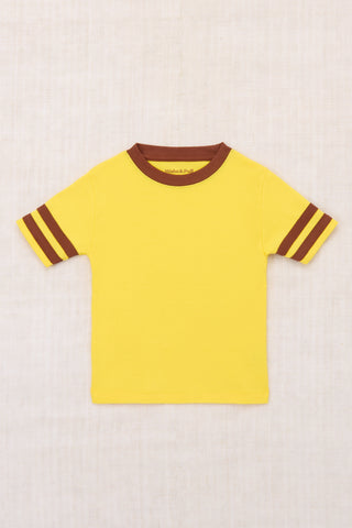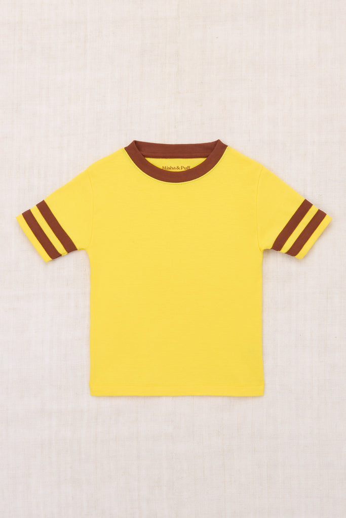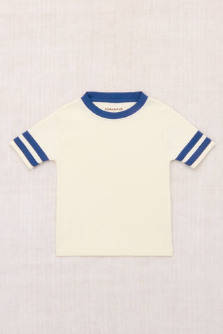 A classic slim fit ringer tee in organic pima cotton with contract applique striped sleeves and neckline.